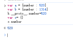 2、当在b对象中没有找到时,它会在b.proto中寻找number属性